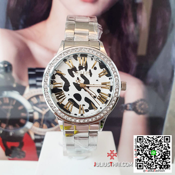 นาฬิกา Julius JA-1005 สีเงิน หน้าปัดลายเสือ ลดล้างสต๊อค จำนวนจำกัด ของเเท้ รับประกันศูนย์