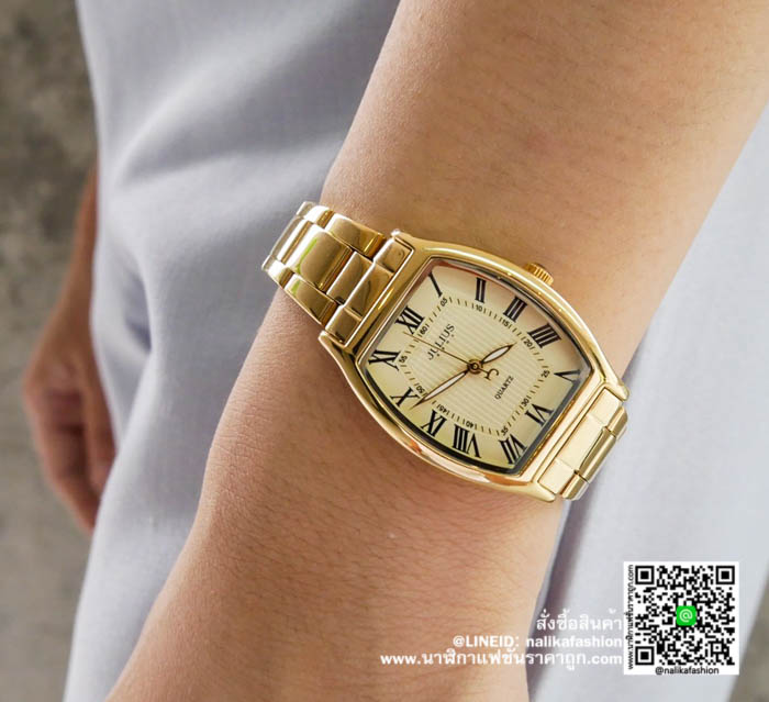 นาฬิกา Julius JA-1027 หน้าปัดเหลี่ยม สีทอง ของแท้