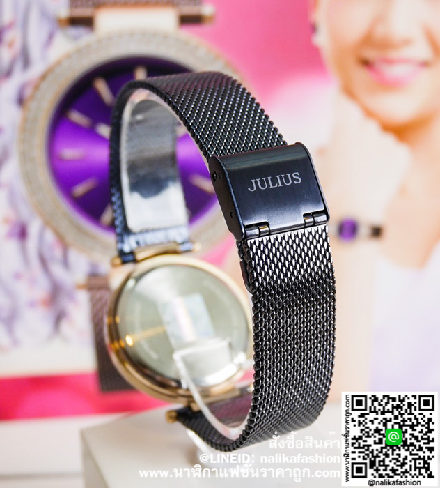 นาฬิกา Julius JA-1111 สายสแตนเลสพิ้งโกล-น้ำตาล หน้าปัดฟ้าประกาย