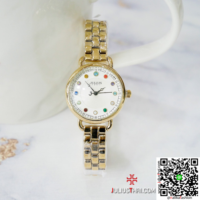 นาฬิกา Julius JA-1088 สายสแตนเลส สีทอง สวย ของมันต้องมี ส่งฟรี มีบริการเก็บเงินปลายทาง ✓งานแบรนแท้ ✓บอกเวลา ✓กันน้ำได้ 30M ✓สายสแตนเลสอย่างดี ✓สินค้าของแท้มีใบรับประกัน 1 ปี ✓ เส้นผ่าศูนย์กลางตัวเรือน 3.2 เซนติเมตร