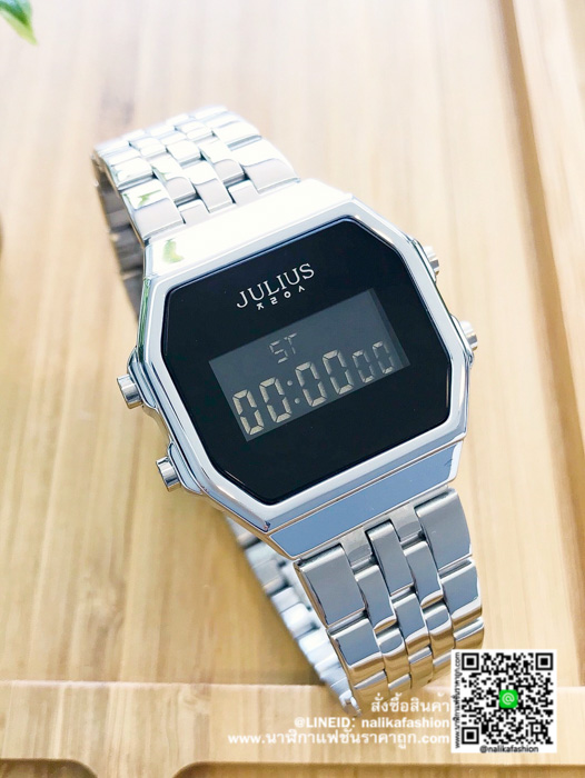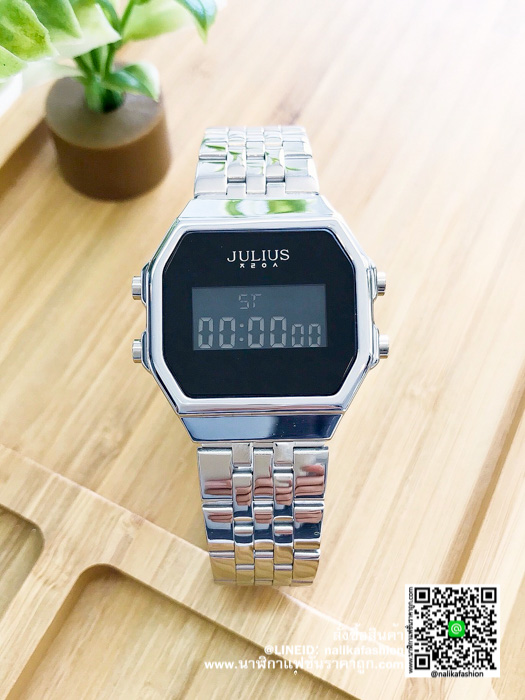 นาฬิกา Julius JA-1092 หน้าปัดเหลี่ยม ผู้หญิง ดิจิตอล สีเงิน ของแท้ รับประกัน 1 ปี
