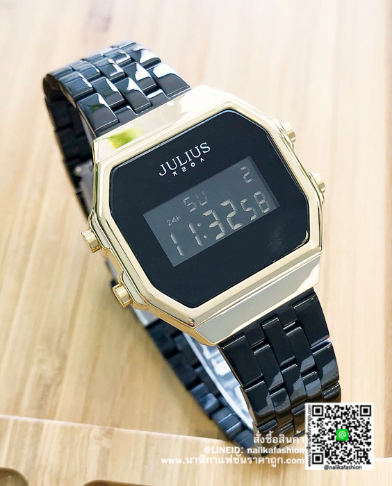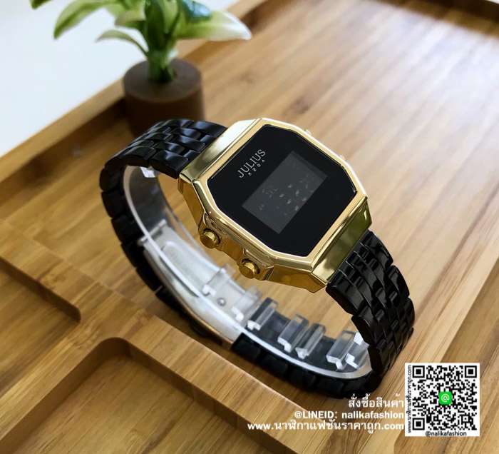 นาฬิกา Julius JA-1092 หน้าปัดเหลี่ยม ผู้หญิง ดิจิตอล สีดำ-ทอง รุ่นขายดี