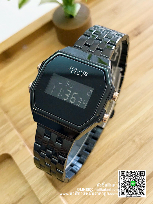 นาฬิกา Julius JA-1092 หน้าปัดเหลี่ยม ผู้หญิง ดิจิตอล สีดำ รุ่นขายดี