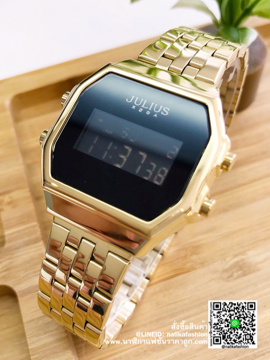 นาฬิกา Julius JA-1092 หน้าปัดเหลี่ยม ผู้หญิง ดิจิตอล สีดำ-ทอง รุ่นขายดี จาก 1 รีวิว
