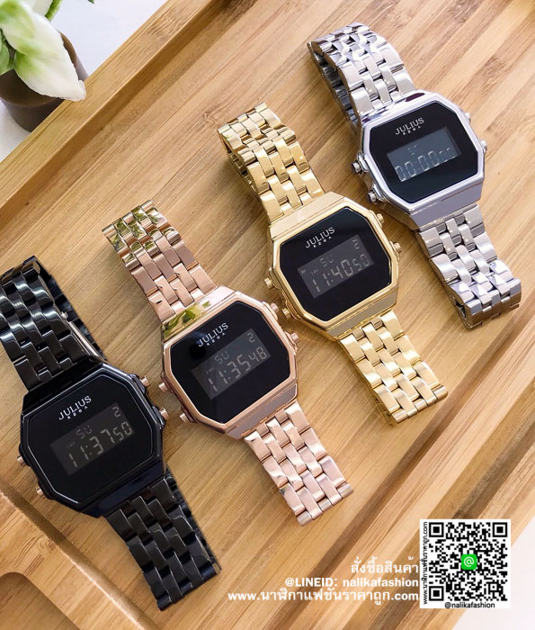 นาฬิกา Julius JA-1092 หน้าปัดเหลี่ยม ผู้หญิง ดิจิตอล สีดำ รุ่นขายดี จาก 1 รีวิว