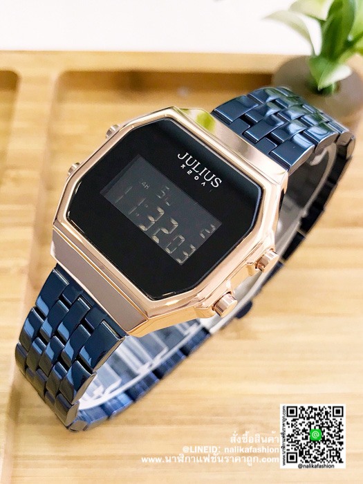 นาฬิกา Julius JA-1092 หน้าปัดเหลี่ยม ผู้หญิง ดิจิตอล สีน้ำเงิน-พิ้งโกล รุ่นขายดี