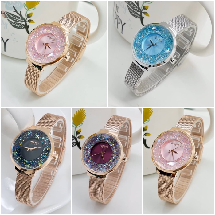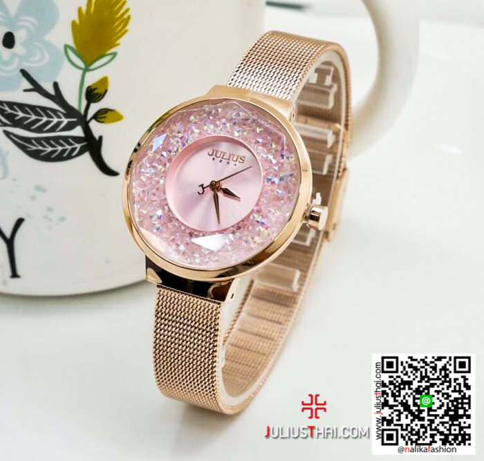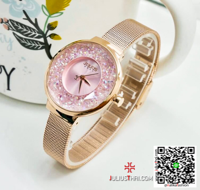 นาฬิกา Julius JA-1111 สายสแตนเลส สีพิ้งโกล หน้าปัดเพชรประกาย ของเเท้