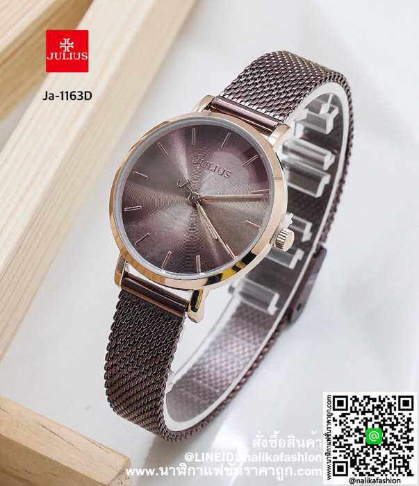 นาฬิกา Julius JA-1163 สีน้ำตาล หรูหรามากกกกก ส่งฟรี มีบริการเก็บเงินปลายทาง ✓งานแบรนแท้ ✓บอกเวลา ✓กันน้ำได้ 30M ✓สายสแตนเลสอย่างดี ✓สินค้าของแท้มีใบรับประกัน 1 ปี ✓ เส้นผ่าศูนย์กลางตัวเรือน 2.8 เซนติเมตร