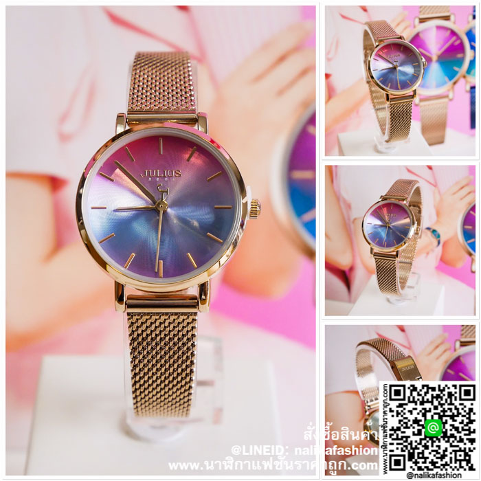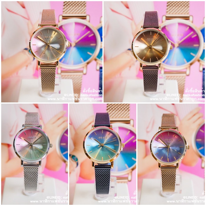 นาฬิกา Julius JA-1163 สีพิ้งโกล หน้าปัดกลม สีรุ้ง สวยน่ารักมาก จาก 1 รีวิว