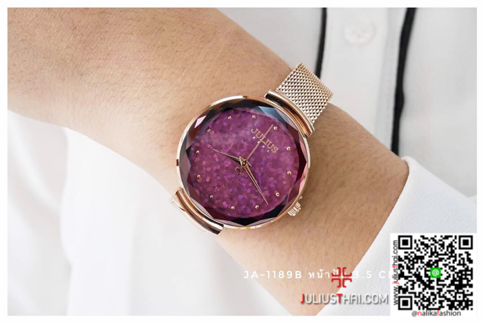 นาฬิกา Julius JA-1189 สายสแตนเลส สีม่วง สวยหรูหรา ของเเท้ ส่งฟรี มีบริการเก็บเงินปลายทาง ✓งานแบรนแท้ ✓บอกเวลา ✓กันน้ำได้ 30M ✓สายสแตนเลสอย่างดี ✓สินค้าของแท้มีใบรับประกัน 1 ปี ✓ เส้นผ่าศูนย์กลางตัวเรือน 3.0 เซนติเมตร