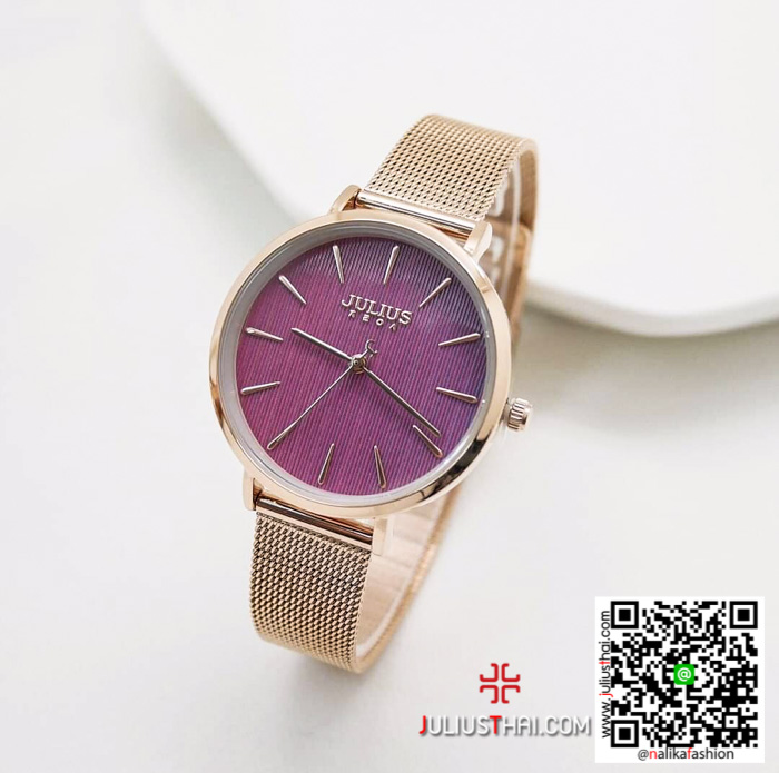 นาฬิกา Julius JA-1198 สายสแตนเลส สีพิ้งโกล หน้าปัดม่วง สวยๆ ของเเท้
