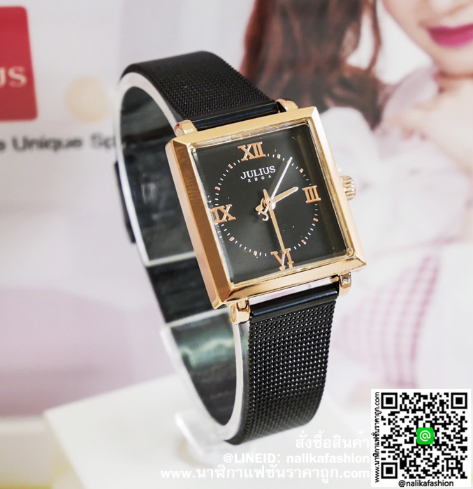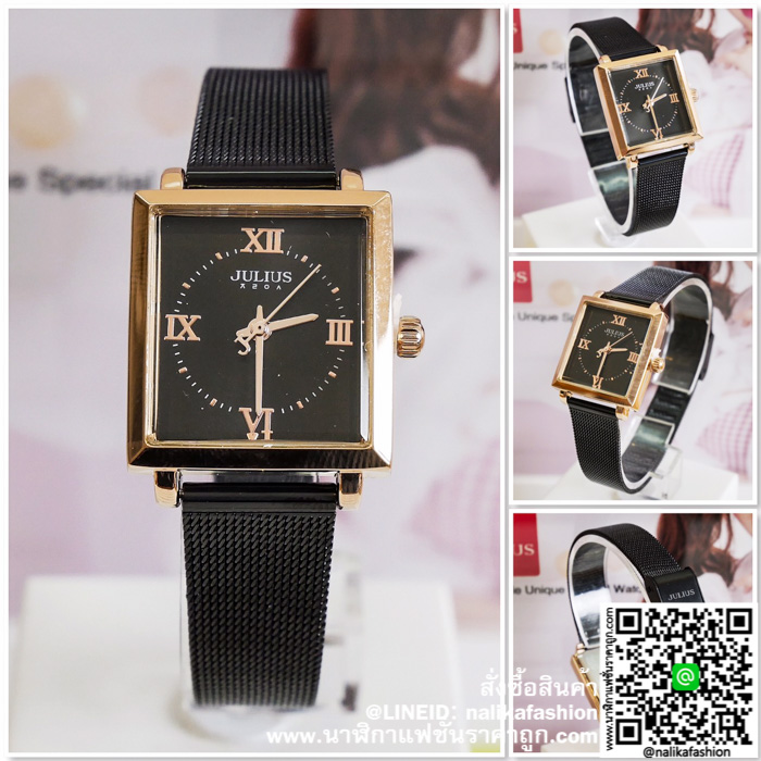 นาฬิกา Julius JA-1202 สีดำ หน้าปัดเหลี่ยม สวยน่าร้าก ของเเท้