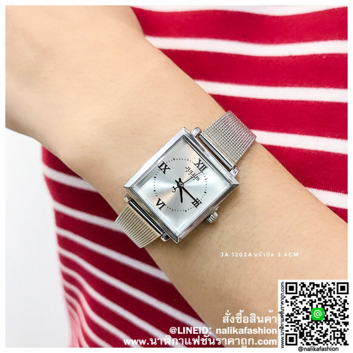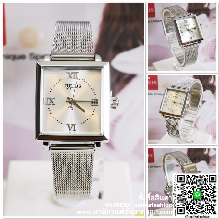 นาฬิกา Julius JA-1202 สีเงิน หน้าปัดเหลี่ยม สวยมากๆ ของเเท้ ส่งฟรี มีบริการเก็บเงินปลายทาง ✓งานแบรนแท้ ✓บอกเวลา ✓กันน้ำได้ 30M ✓สายสแตนเลสอย่างดี ✓สินค้าของแท้มีใบรับประกัน 1 ปี ✓ เส้นผ่าศูนย์กลางตัวเรือน 3.0 เซนติเมตร