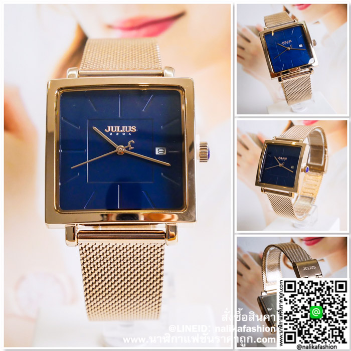 นาฬิกา Julius JA-1207 สีพิ้งโกล หน้าปัดเหลี่ยม สวยเก๋ ของเเท้ จาก 1 รีวิว