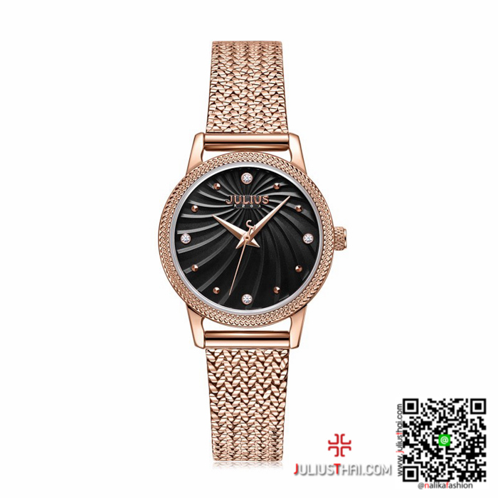 นาฬิกา Julius JA-1219 สีพิ้งโกล หน้าปัดกลมสีดำ สวยน่ารัก ของเเท้