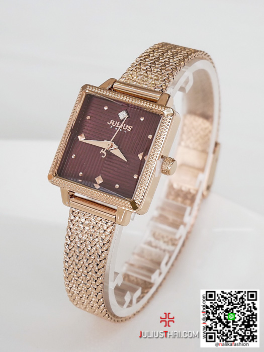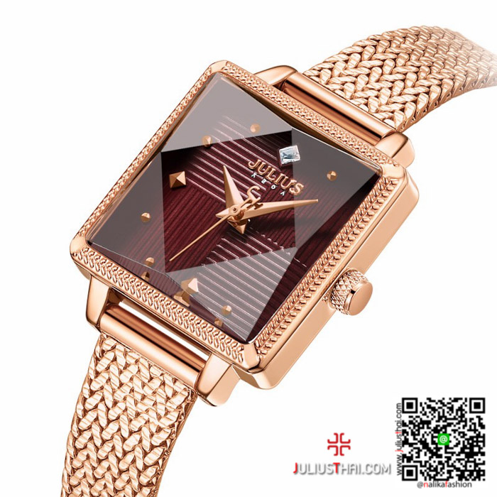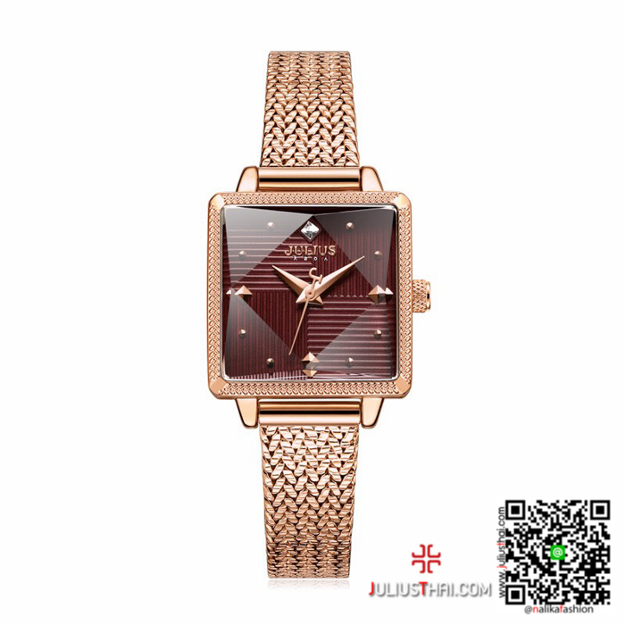 นาฬิกา Julius JA-1220 สีพิ้งโกล หน้าปัดเหลี่ยม สุดเก๋