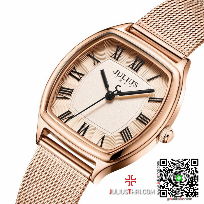 นาฬิกา Julius JA-1242 สีพิ้งโกล หน้าปัดเหลี่ยม หรูหราสุดๆ ของเเท้ ส่งฟรี มีบริการเก็บเงินปลายทาง ✓งานแบรนแท้ ✓บอกเวลา ✓กันน้ำได้ 30M ✓สายสแตนเลสอย่างดี ✓สินค้าของแท้มีใบรับประกัน 1 ปี ✓ เส้นผ่าศูนย์กลางตัวเรือน 2.8 เซนติเมตร