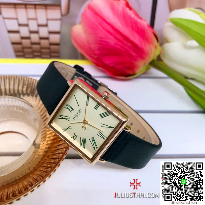 นาฬิกา Julius JA-1269 สีดำ หน้าปัดเหลี่ยม สวยมาก เก๋มาก