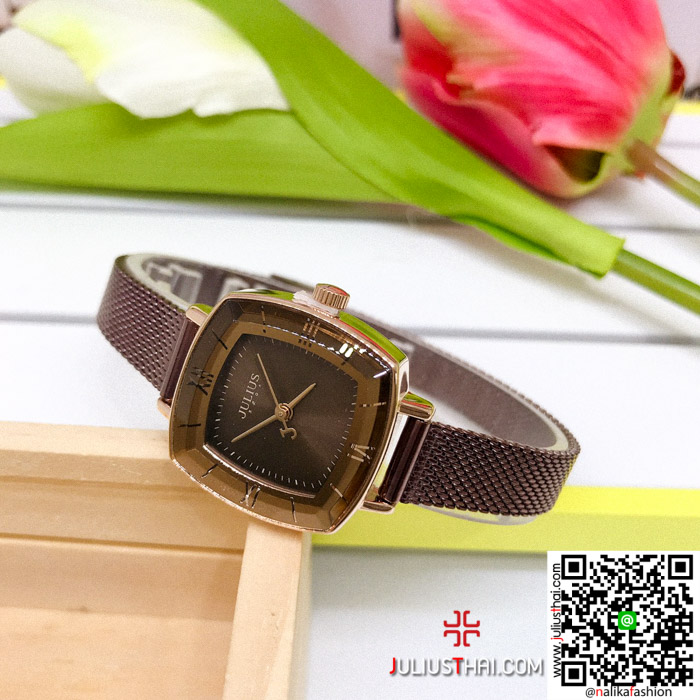 นาฬิกา Julius JA-1270 สีน้ำตาล หน้าปัดเหลี่ยม สุดปัง ของเเท้ ส่งฟรี มีบริการเก็บเงินปลายทาง ✓งานแบรนแท้ ✓บอกเวลา ✓กันน้ำได้ 30M ✓สายสแตนเลสอย่างดี ✓สินค้าของแท้มีใบรับประกัน 1 ปี ✓ เส้นผ่าศูนย์กลางตัวเรือน 2.4 เซนติเมตร