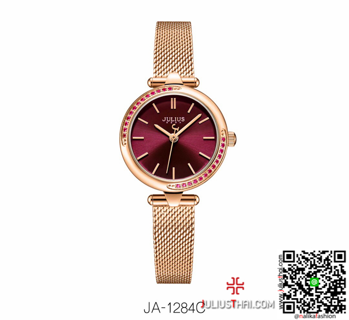 นาฬิกา Julius JA-1284 สายสแตนเลส สีพิ้งโกล ดูดีสุดๆ ของเเท้ ส่งฟรี มีบริการเก็บเงินปลายทาง ✓งานแบรนแท้ ✓บอกเวลา ✓กันน้ำได้ 30M ✓สายสแตนเลสอย่างดี ✓สินค้าของแท้มีใบรับประกัน 1 ปี ✓ เส้นผ่าศูนย์กลางตัวเรือน 2.5 เซนติเมตร