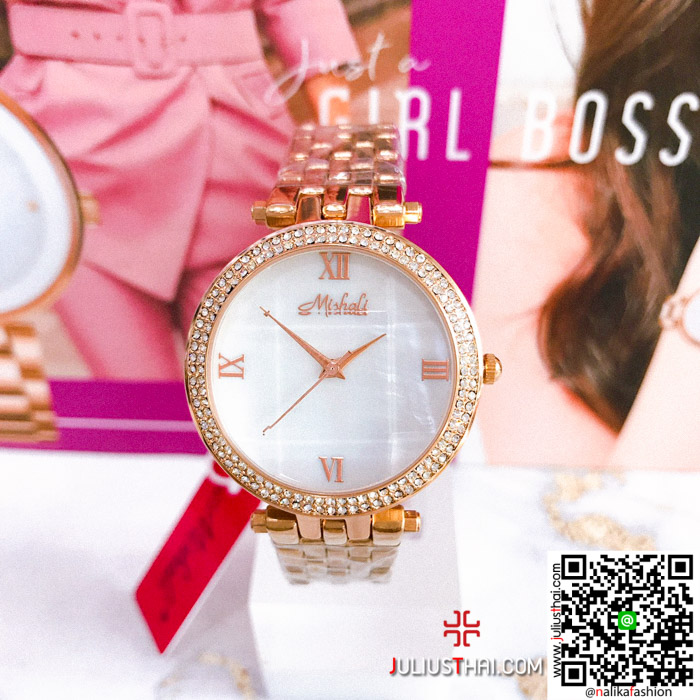 นาฬิกา Mishali Mi-17706 สายสเเตนเลส หน้าปัดกลม สีพิ้งโกล สวยมากๆ พร้อมกล่องแบรน ถุงแบรน