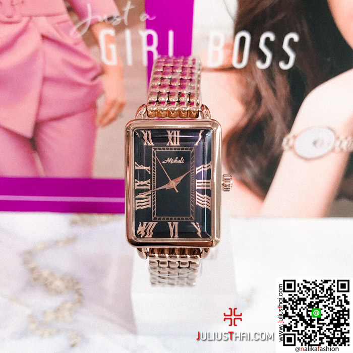 นาฬิกา Mishali Mi-19033 สายสเเตนเลส หน้าปัดเหลี่ยม สีพิ้งโกล ของเเท้ จาก 1 รีวิว
